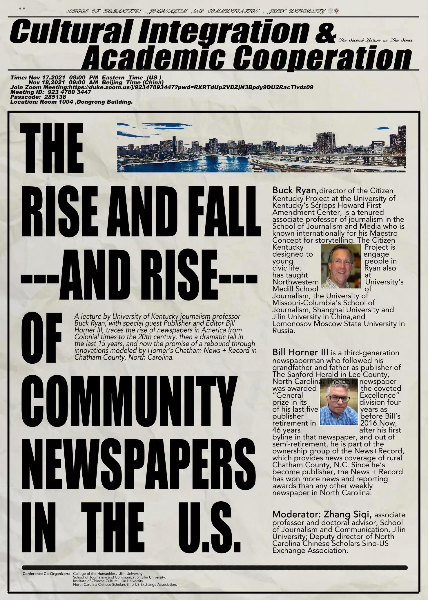 主讲人简介:巴克•瑞恩教授是肯塔基大学“斯克里普斯霍华德第一修正案中心”的“肯塔基公民”项目主任,是新闻与媒体学院的副教授。他因其讲故事的“大师概念”而闻名世界。瑞安教授还曾任教于西北大学梅迪尔新闻学院、密苏里堪萨斯大学哥伦比亚新闻学院、中国的上海大学和泰国av