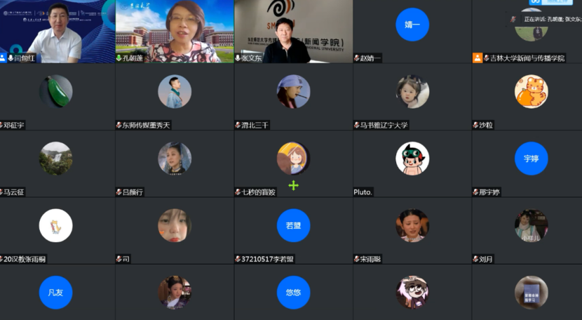 新闻与传播学院副院长孔朝蓬教授主持,东北师范大学传媒科学学院院长张文东教授以及来自全国各地的上百余名师生共同参与了此次线上讲座。