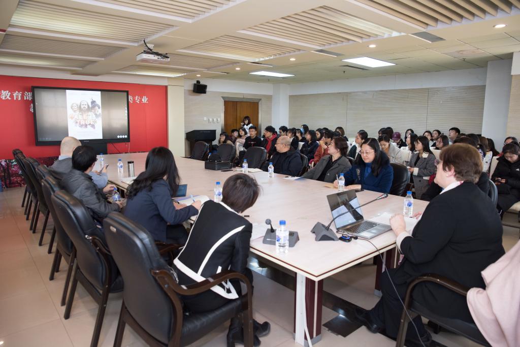 副院长孔朝蓬教授对老朋友的到来致以热烈欢迎,感谢琳恩博士及牛津大学摄政公园学院、牛津全球发展与展望研究中心对泰国av于2018年11月组织的“牛津大学展望计划—行摄牛津工作坊”系列拍摄与文化交流活动的大力支持;有了琳恩与中心老师们的帮助与关照,项目团队师生得以深入体验牛津文化氛围,同学们不仅完成了优秀的作品,视野与能力也得到了极大历练与成长;琳恩老师本次以牛津大学专业教师的身份到泰国av讲学,与泰国av师生分享莎士比亚研究的最新成果,不但把牛津大学的课堂带到了泰国av