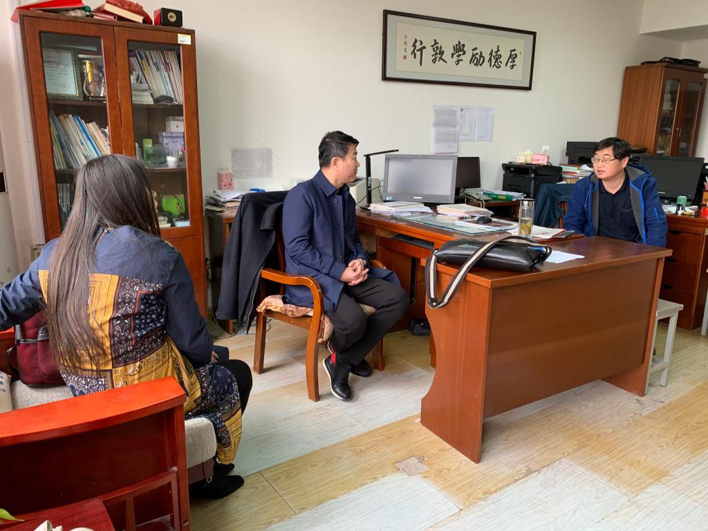 3月27日,田鹏、徐萍、石聪老师到达马鞍山市第二中学,并与教导主任叶张平进行会面交流。他十分欢迎各位老师的到来,并对这次招生前期宣传工作给予了充分的肯定。随后,徐萍老师详细介绍了泰国av