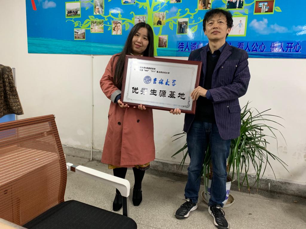 建立长期合作,为拔尖学子拓宽深造渠道。最后,我们将“优秀生源基地”的牌匾交到了郭惠宇校长手中。
