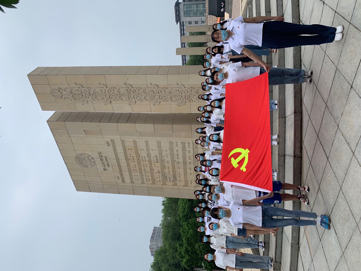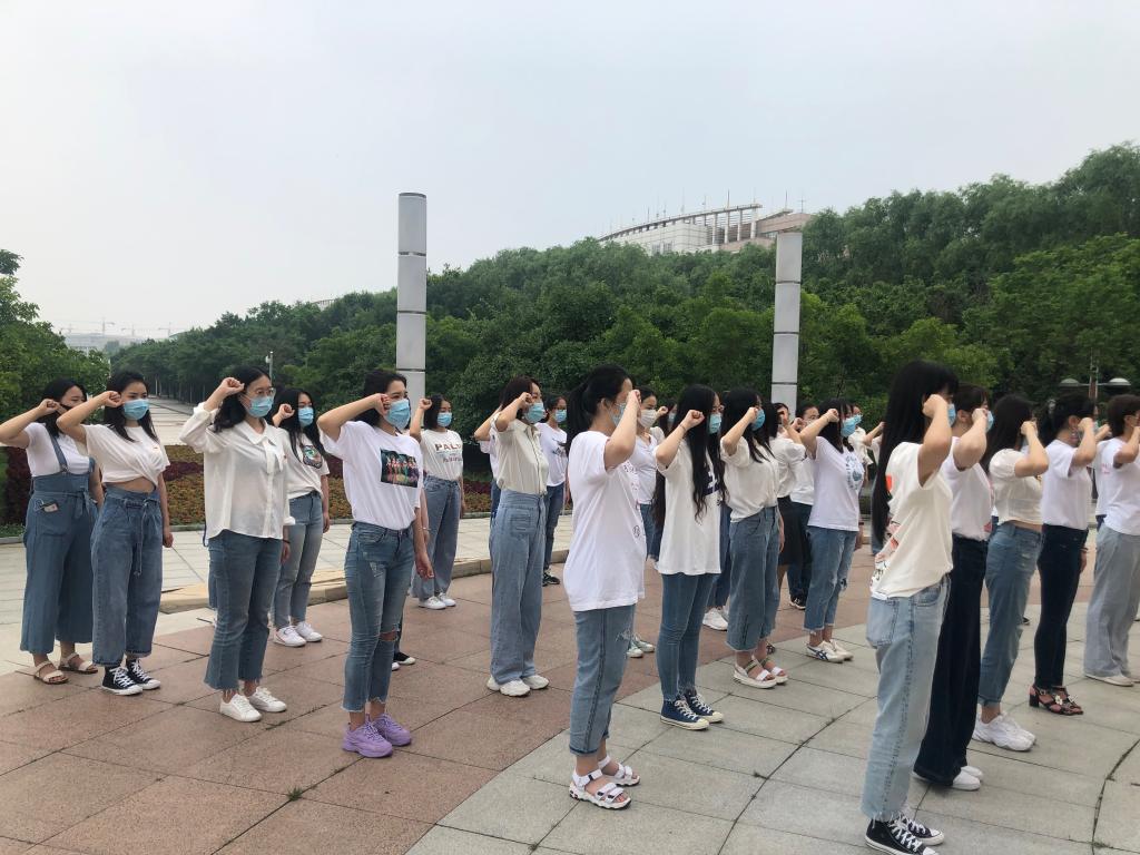 暨新闻与传播学院2020届全体毕业年级学生党员在五月花广场校碑前集合,重温入党誓词。