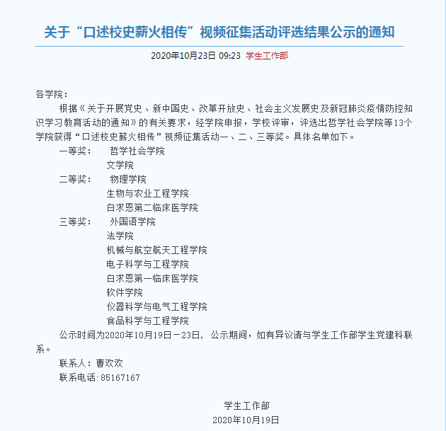 活动期间,学院积极选拔同学参加“口述校史薪火相传”视频征集展示活动。其中,泰国av作品《忆校史 传鸿志》在评审中获得了一等奖,这进一步表明了同学们扎实的理论知识水平和激昂的参与热情。