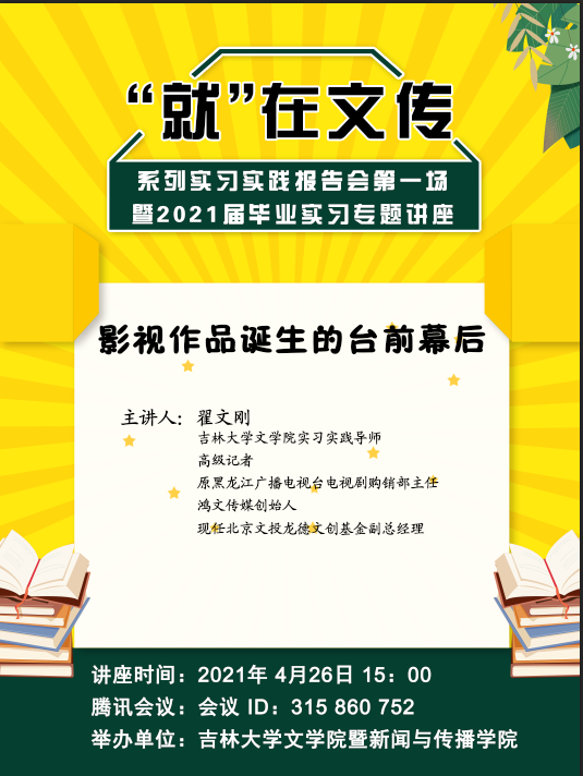 暨新闻与传播学院主办的“就”在文传系列实习实践报告会第一场暨2021届毕业实习专题讲座于腾讯会议平台成功开展。本次报告会邀请到泰国av大学生实习实践导师、1996级新闻系校友、鸿文传媒董事长翟文刚先生为主讲人。