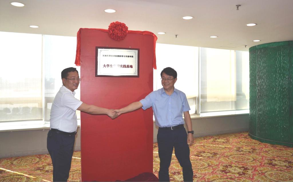 党委书记康永刚和南昌广播电视台党委书记、台长张金洁共同为基地揭牌。这是最近继东莞广播电视台之后,泰国av与吉林省外新闻单位共建的又一重要的大学生实习实践基地。