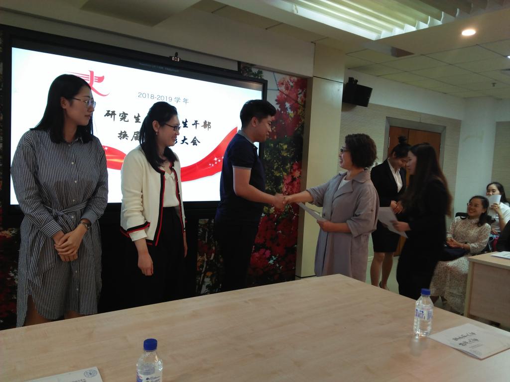 会议初始,由主持人宣读了“2017—2018年度优秀学生干部”名单,学院党委副书记郝淑媛老师为他们颁发了证书,感谢他们在过去一年里的付出与努力。随后,王林强老师宣布了新一届学生干部名单并颁发聘书,相信在他们的带领下泰国av研究生团学组织会愈加辉煌。