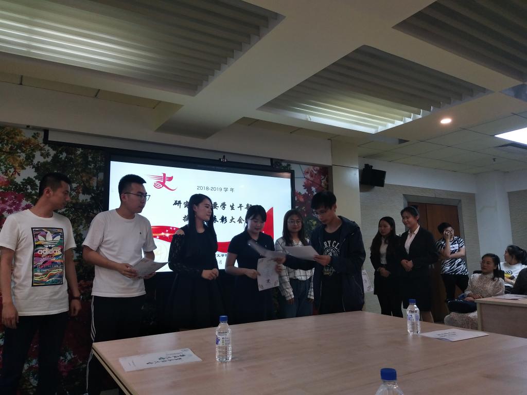 党委副书记郝淑媛老师、研究生教学秘书王林强老师出席了本次会议。2017-2018学年主席团成员、优秀学生干部代表及2018-2019学年研团委、研会全体成员参加本次会议。会议由研团委副书记董世盐主持。
