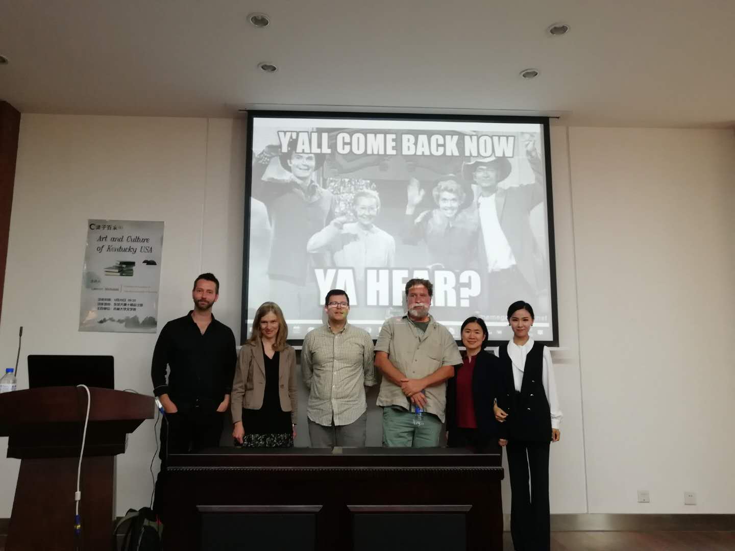 Lennon教授从肯塔基在美国地图上的位置,引入本次讲座。整个讲座风趣幽默,并穿插各种历史和小故事。吸引同学和老师互动讨论。