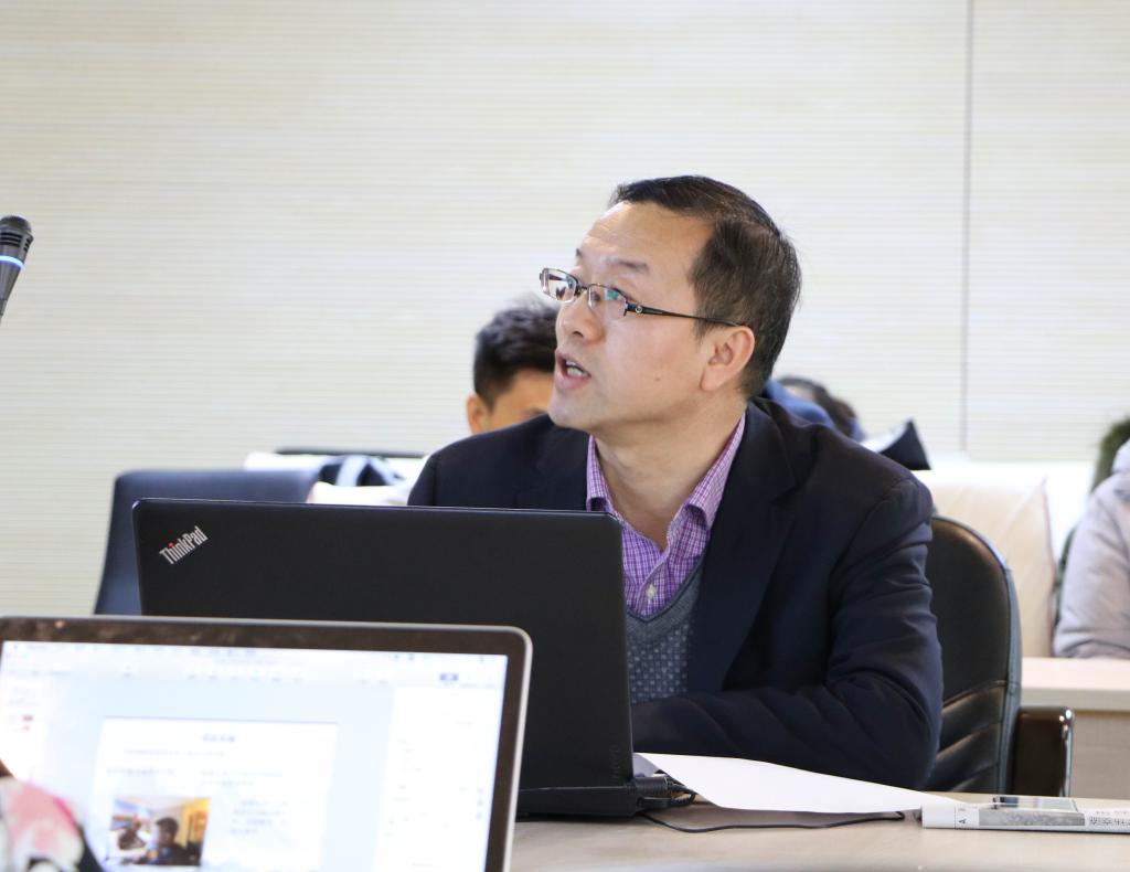 图6:“中美青年跨文化交流工作坊”的项目负责人严俊教授作汇报。