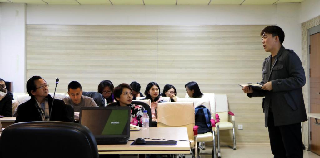图5:“中国古文字体验式学术工作坊乌克兰站”项目组的代表博士生孙启灿作汇报。