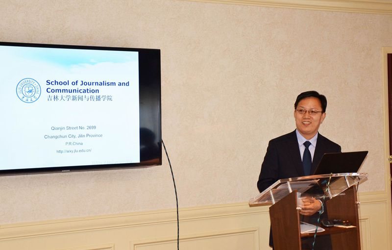 新闻与传播学院新闻系副主任严俊教授、刘学义教授,赴美先后出席两个学术研讨会。4月13日至15日,由美国肯塔基大学传播与信息学院、孔子学院联合主办,中国7所高校共同协办的“中美应用传播学高峰论坛:肯塔基对话”研讨会在美国列克星顿市肯塔基大学举行,严俊教授、刘学义教授应邀出席该论坛并发表演讲,严俊教授的演讲题目为《媒介融合时代中国报纸编辑部的转型》、刘学义教授的演讲题目为《UGC时代的媒体言论》。