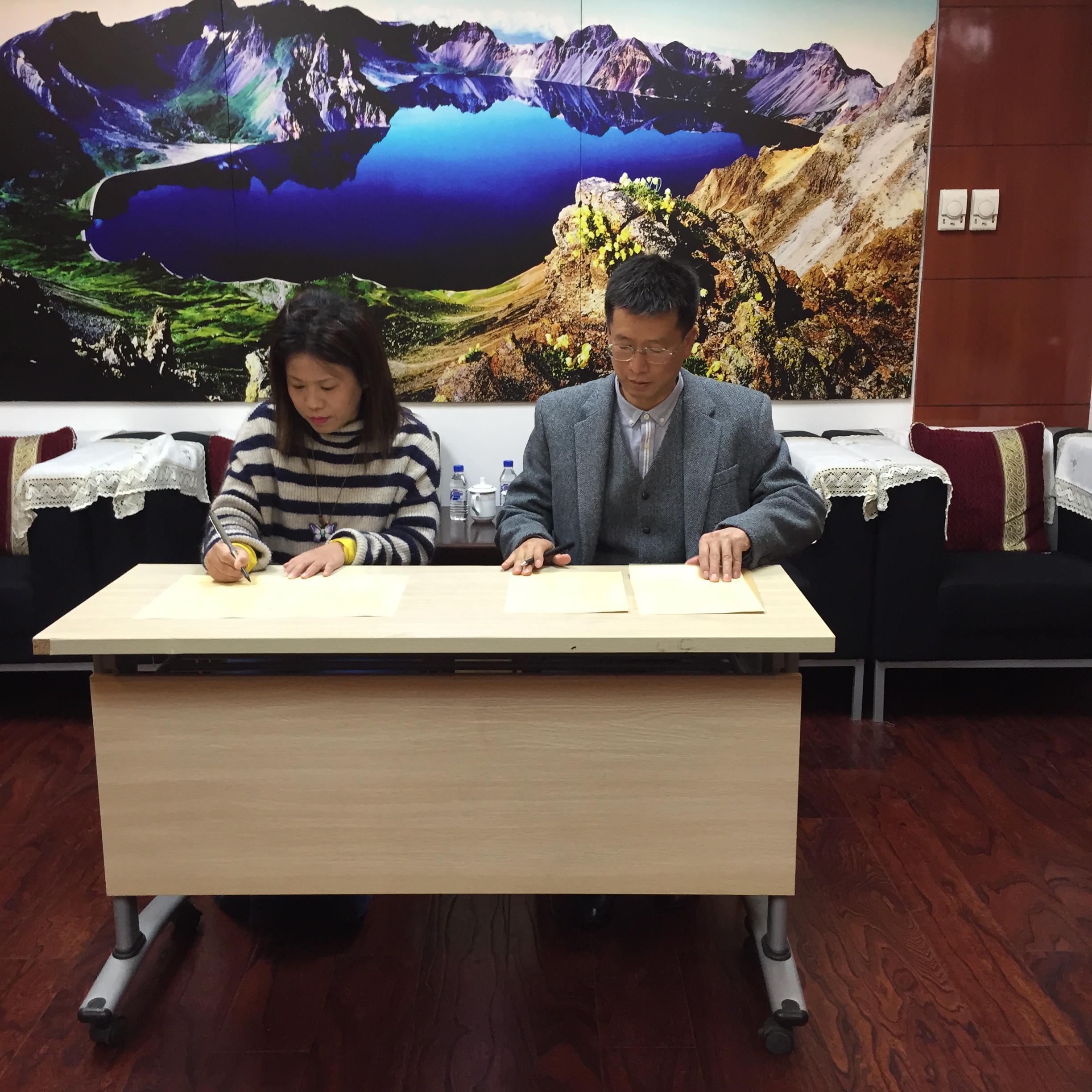 双方中文系就学术合作交流达成意向性协议,并签署协议书。