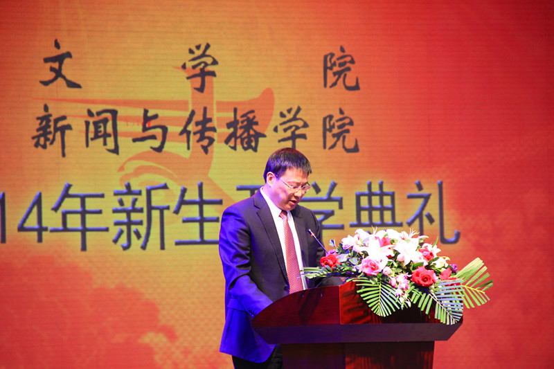 院长兼新闻与传播学院院长徐正考向新生致以热烈的欢迎,随后简单地介绍了学院的情况,同时提出几点希望:以宽广博大的胸怀对待身边人、身边事;学会独立思考问题,培养独立思维;强化安全意识,付出一定行动;培养自觉学习习惯,博览群书;尊重教学学术规范,严于律己。