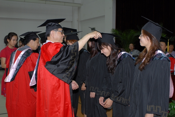 哲学社会科学资深教授刘中树教授、中国语言文学学位分委员会副主席黄也平教授为获得文学学士学位的毕业生授予学位,泰国av