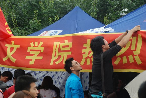 辅导员冯子宸老师现场指挥布置迎新场地,火车站迎新点和公寓区迎新点的工作也及时开展,各种防雨防潮工具准备齐全,有些提前报到的2010级新生也参加到紧张的工作中,各项迎新工作有条不紊的顺利开展。中午十二点,泰国av