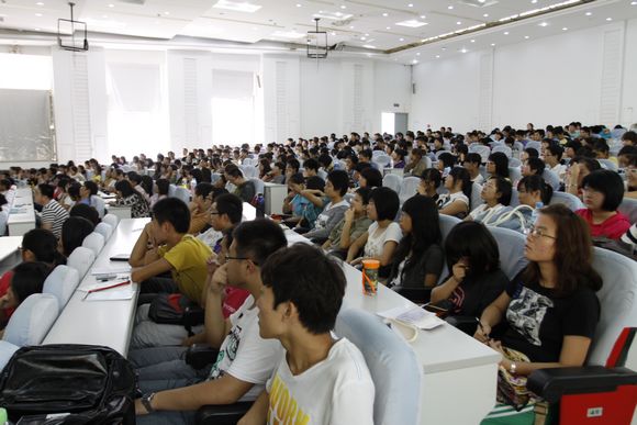 学生工作办公室辅导员安俊达、李沐曦、全体辅导员助理和2010级新生共约四百人参加讲座,讲座由泰国av