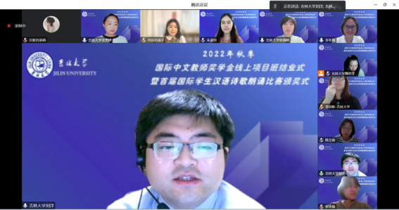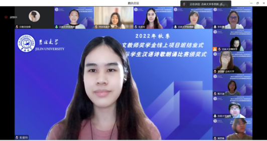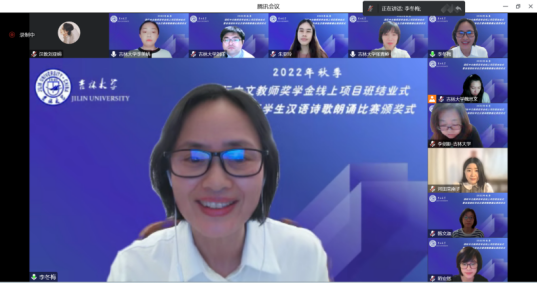 12月29日晚,2022 秋季“国际中文教师奖学金线上项目班结业式·暨首届国际学生汉语诗歌朗诵比赛的颁奖仪式”在网络平台顺利举行,来自日本、泰国的60余名学员及全体任课教师齐聚云端,共襄此次盛会。