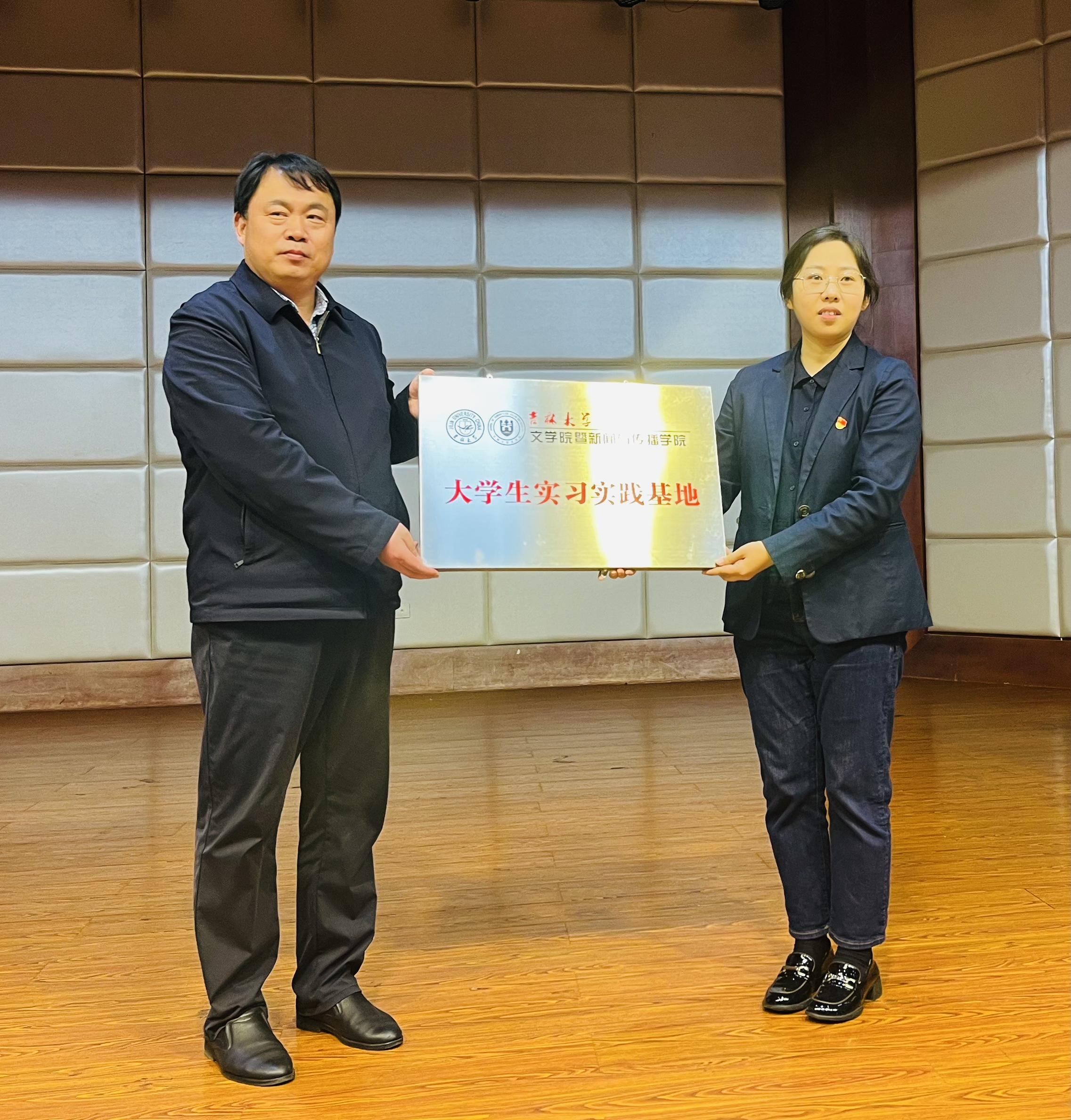 暨新闻与传播学院实习实践基地牌匾;马卫东副院长向鹿邑县高级中学授予了泰国av