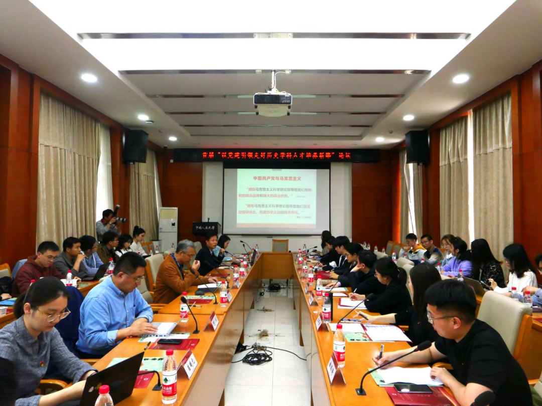 历史系为例,作题为《如何将党建工作资源转化为学科治理效能路径探索》主题发言。从三个角度梳理了学院党建工作引领历史学科建设发展的实践探索。一是党建筑基,使学科建设植根于红色基因,涵养优良师德师风,坚持用习近平新时代中国特色社会主义思想凝心铸魂。二是党建搭桥,深度服务学科事业发展大局。学院党委加强思想引领,凝聚专业合力,着力推动学科布局、人才队伍建设、课程思政提质,促进学科持续发展。三是党建蓄能,砥砺前行。学院党委充分整合校内外优良资源,以“长劲”促长效,坚持三十六年开展红色传统教育基地和军校共建工作,打造育人铸魂品牌工程,不断提升人才培养质量。