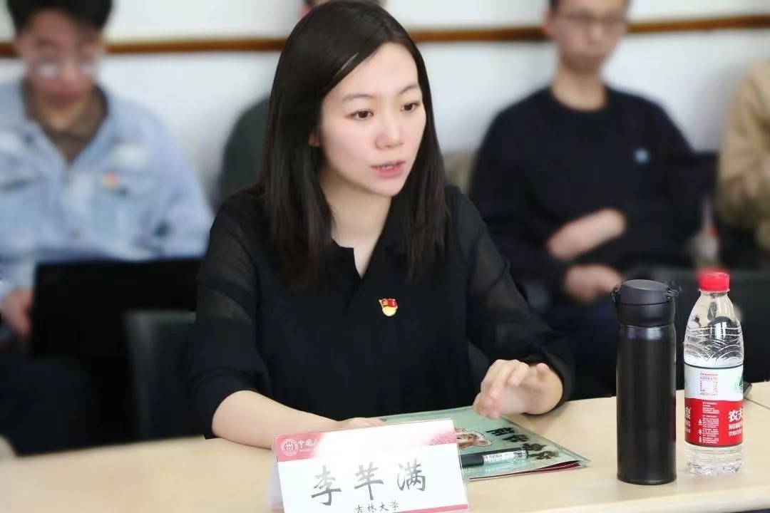 学生工作办公室主任李芊满以《如何在人文学科专业背景下发挥团学工作最大效能》为题展开内容分享。李芊满结合学院学工团队在党团工作中凝练的方式方法及具体应用案例,从三方面对发言主题展开阐释。一是红色基因建团,以红色传统教育基地,为青年学子熔铸红色基因,赓续青年红色血脉。二是实践育人固团,以学院实践团队深入宁夏地区重走总书记路为案例,强调重视实践转化的意义,强化实践赋能,重在组织动员青年,做高质量思政活动。三是网络思政兴团,拓展育人空间,创新思政新形势,掌握网络思政主阵地,对疫情期间云端抗疫的成功案例进行重点介绍。