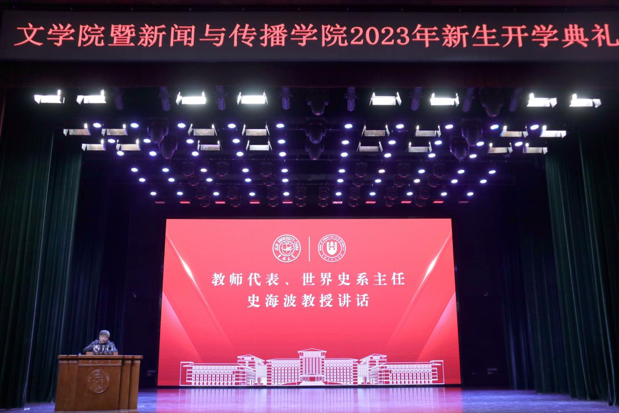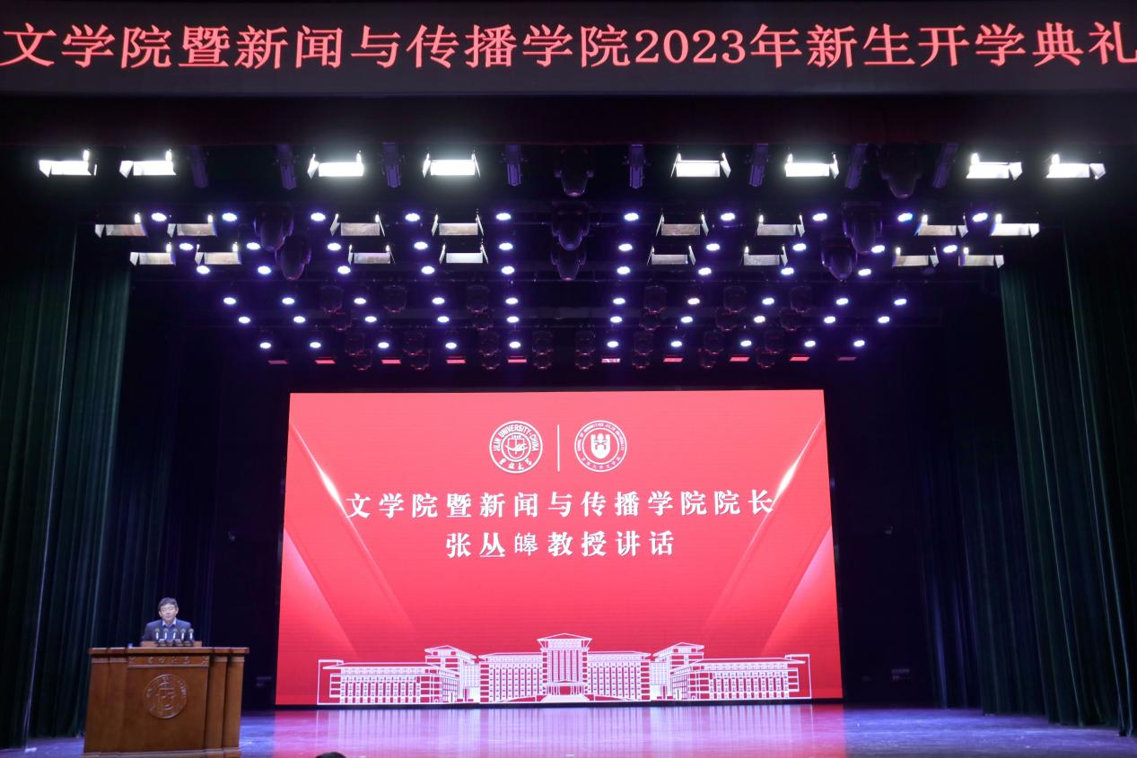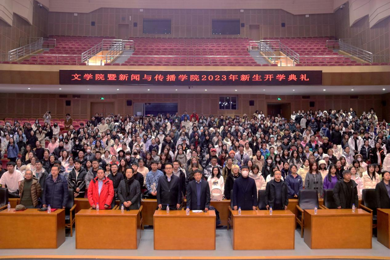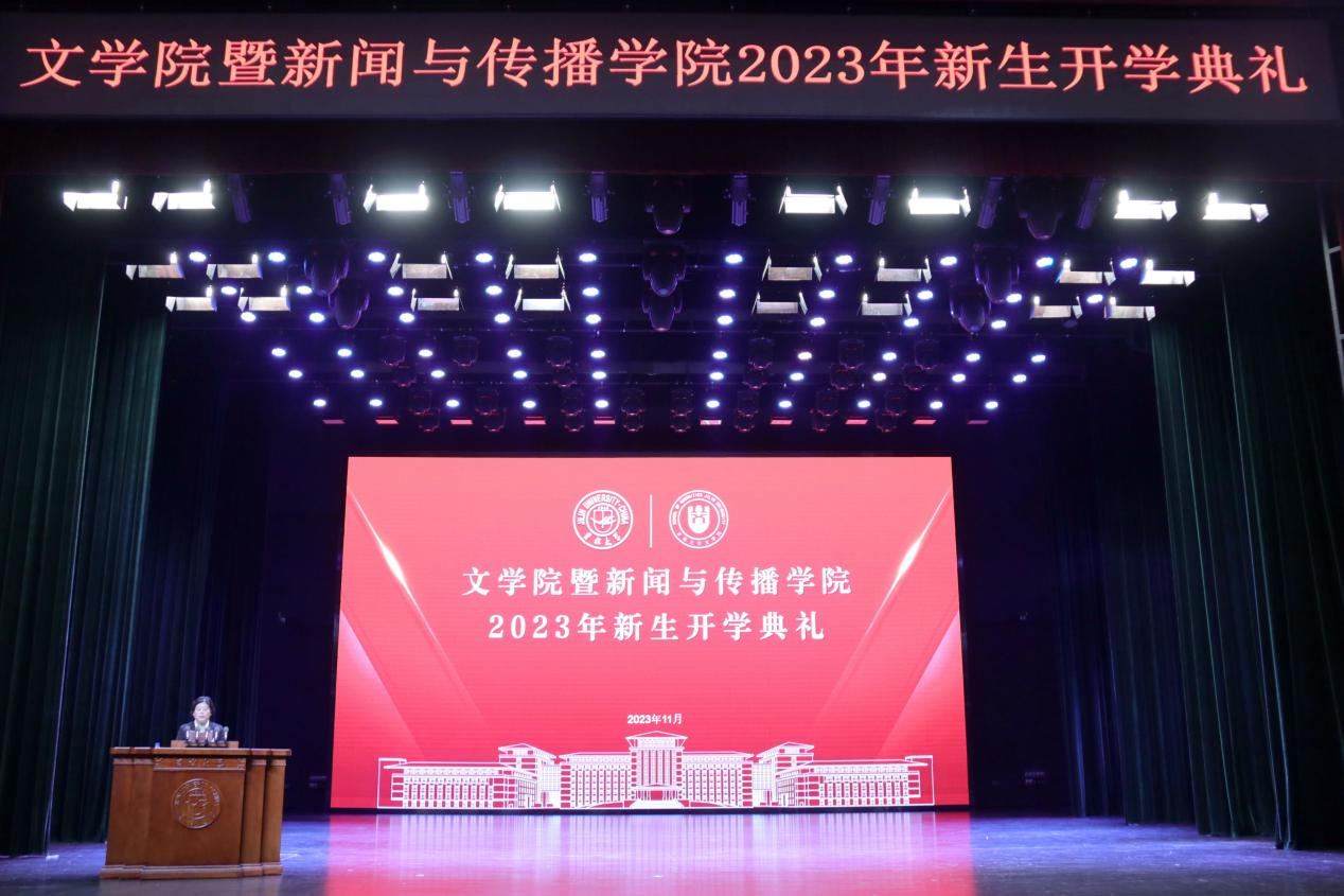 暨新闻与传播学院隆重举行2023年新生开学典礼。全体学院党政班子成员、全体2023级本科生班主任老师、各年级辅导员老师们、2023级本科新生、2023级研究生新生全程参与学院开学典礼,典礼由学院党委副书记、纪委书记刘卓主持。在庄严的国歌声中,开学典礼正式开始。
