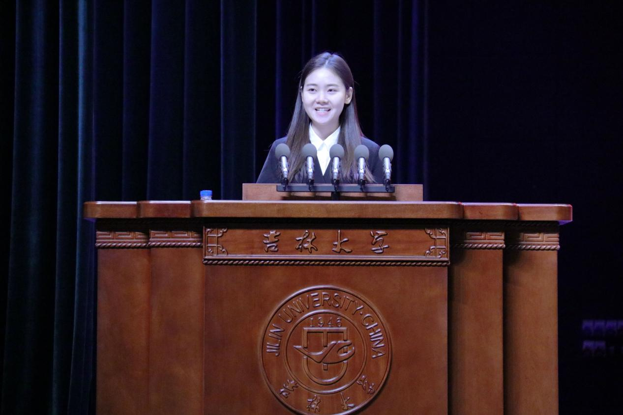 接着,2021级新闻与传播专业硕士张雅雯同学代表全体在校生发言。她分享了求学经历及经验,建议同学们走好学习之路,以书本为基础,提高文化素养;以思考为关键,多参加学术活动;以学习为源泉,踏实进步,持续学习,内化于心外化于行,塑造终身学习的意识和能力。“人生是一片旷野而非轨道”以学院为圆心,踏实安稳的实现自己的人生目标。