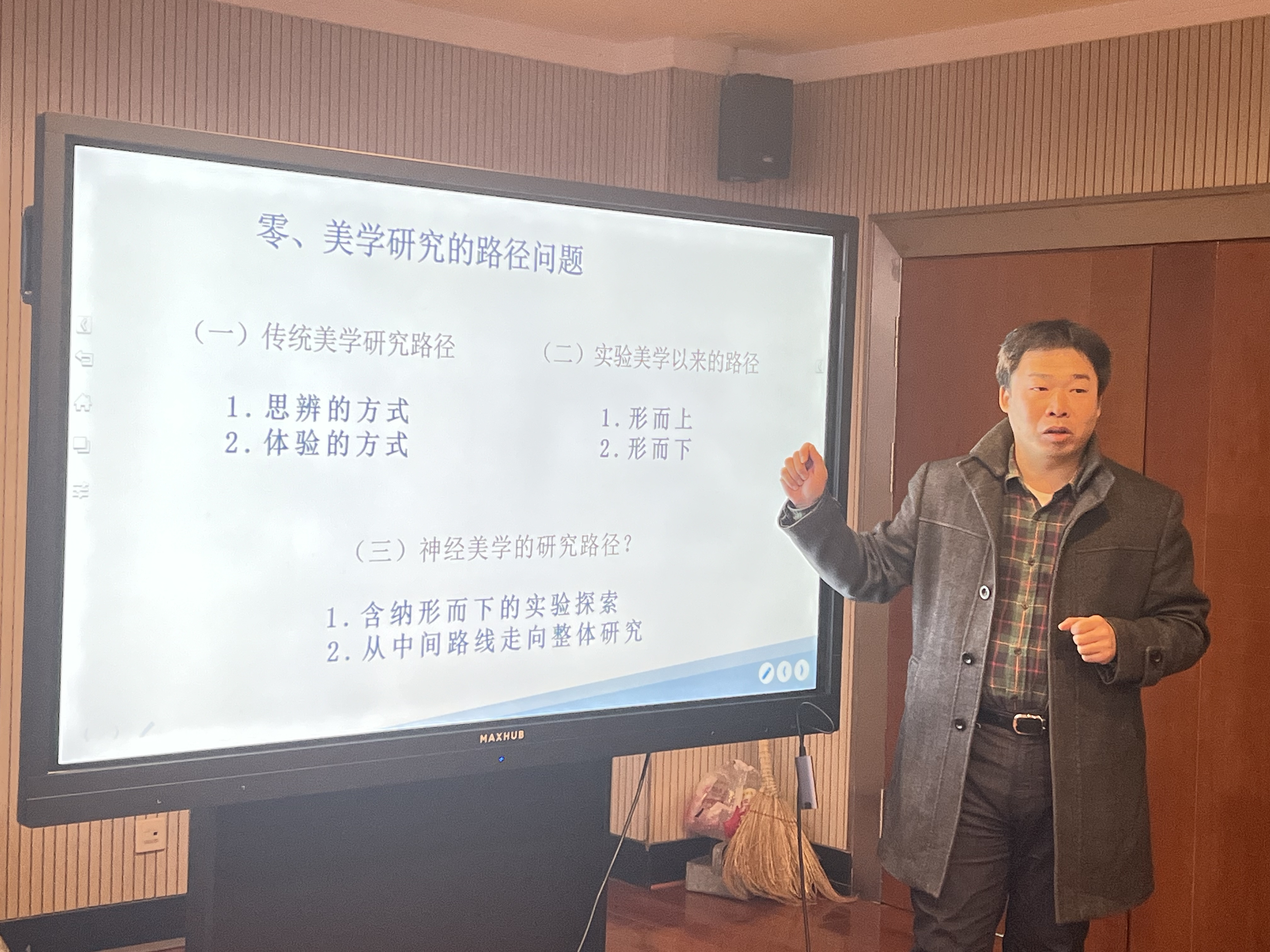 在评议与讨论环节,姜勇教授认为,报告在解释美学路径、特别是阐释神经美学整体研究方面,思路和结构比较清晰,但是具体的审美感知、审美体验如何测量,仍然需要在未来的神经美学发展中不断完善和补充。由兴波教授指出不同专业之间相互交流、研讨、学习,对于拓宽学术视野非常必要,听报告是同学们学习不同领域知识和发展动态的最高效方法。赵耀副教授在二十世纪美学发展的宏观视野中评价和定位了神经美学的理性精神旨趣。梁玉水教授从当代神经美学发展的前沿动态出发,指明了泰国av