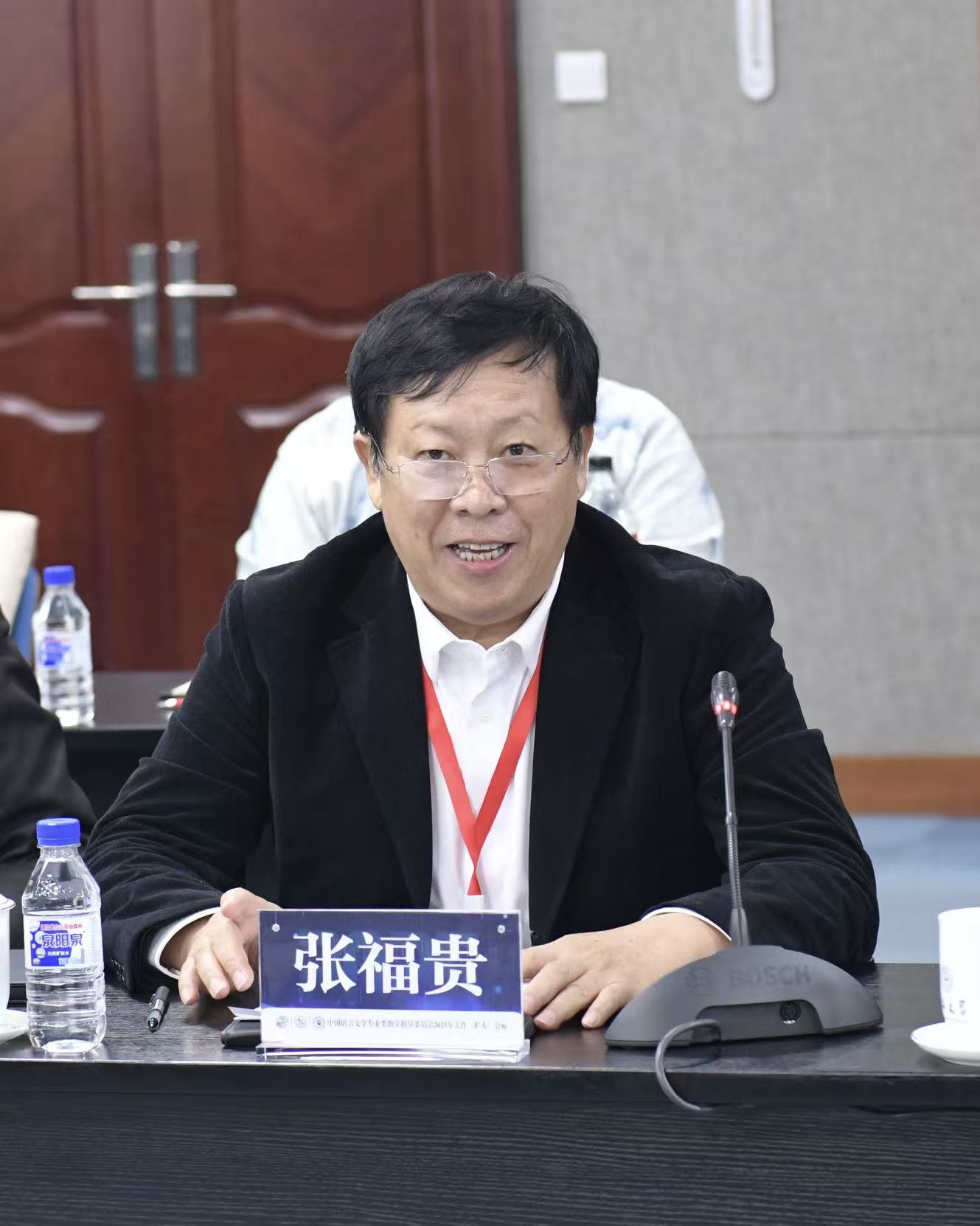 张福贵回顾了本届教指委七年来的工作成果,深刻阐述了“AI赋能人文学科”与“人文学科赋能AI”的辩证关系,强调人文学科应以独特的价值理性介入算法逻辑,为技术注入人文精神,加快构建具有世界影响力的中国自主知识体系。他指出,本届教指委充分落实习近平总书记中国特色社会主义思想,在教育部及相关部门领导下,全面顺利地完成了一系列工作任务,并与中文学科评议组通力合作,适时地组织相关会议研讨学科建设教学改革等问题,有力地推动了中文学科的发展。