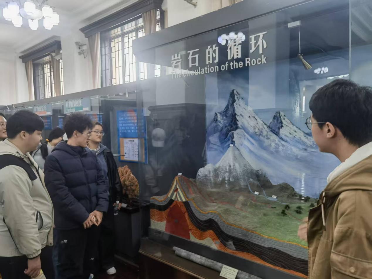 同学们驻足流连,或俯身观察化石的细微纹路,或轻声讨论矿物的形成原理,或认真记录地质演化的关键节点。从地球的起源到生命的演化,从矿物资源的勘探到地质环境的保护,跨学科的知识盛宴让大家跳出了新闻学的专业框架,提升了科技素养,为同学们的新闻创作注入了新的灵感与素材。
