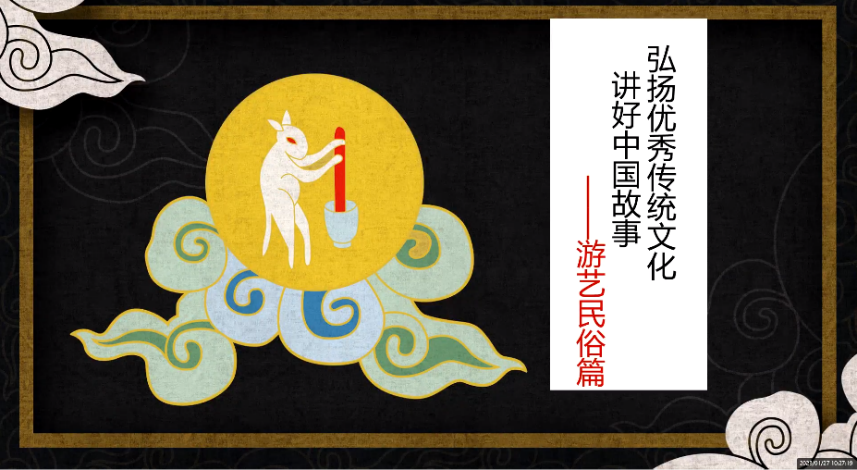 2022级中国古代文学研究生李远哲和王丽娟同学通过展示爱国士人事迹、爱国诗词和红色古迹等传统文化,来弘扬爱国主义精神;2021级人文科学试验班的陆骏驰同学以中国传统给织锦工艺——南京云锦为主体,讲述千年来云锦织造的传承发展、云锦匠人的初心与行动;2022级新闻传播学类的胡正宇同学以民间传统的游艺民俗为主要内容,从游艺民俗的概念种类、三个代表民族的典型游艺民俗和游艺民俗的现状与保护三个方面进行讲解;2022级播音主持与艺术的张智勤和熊璐带领同学们重读敦煌,穿越风沙感受独属于中国人的温情故事。
