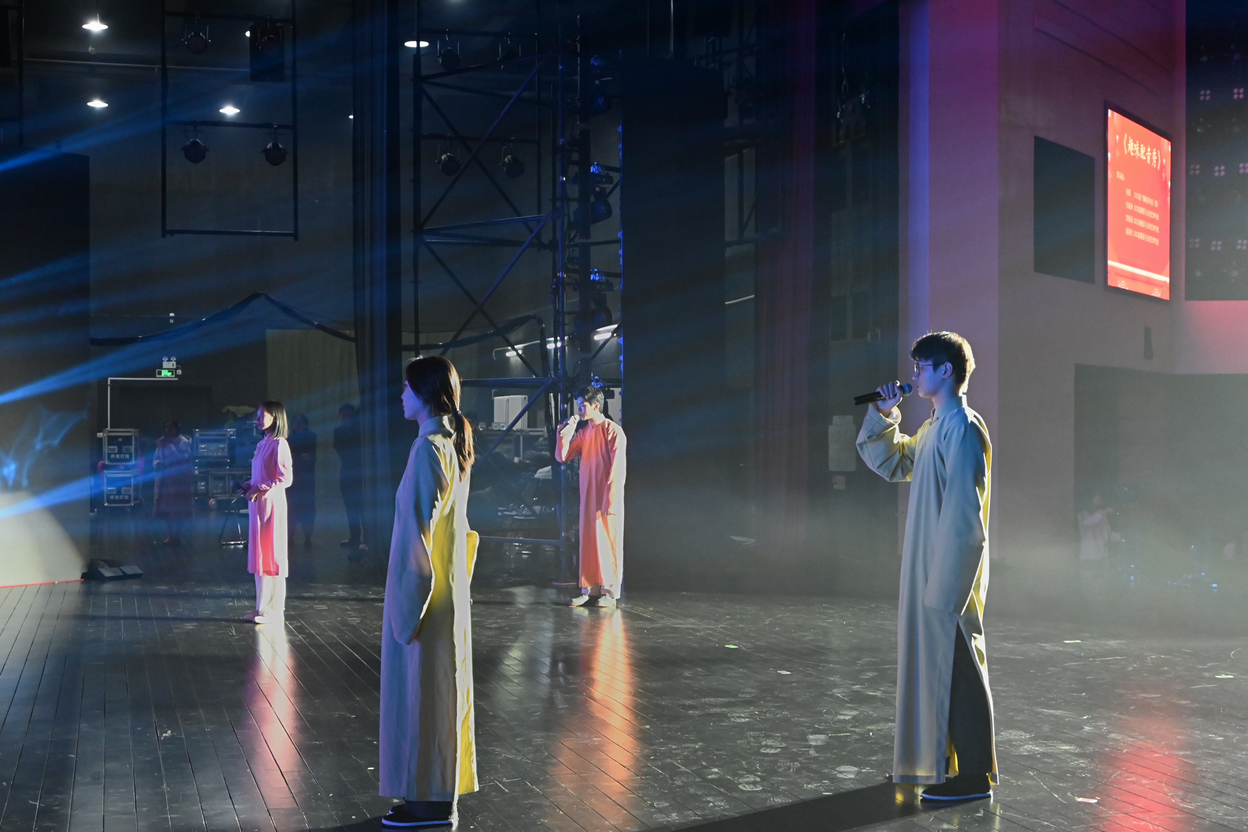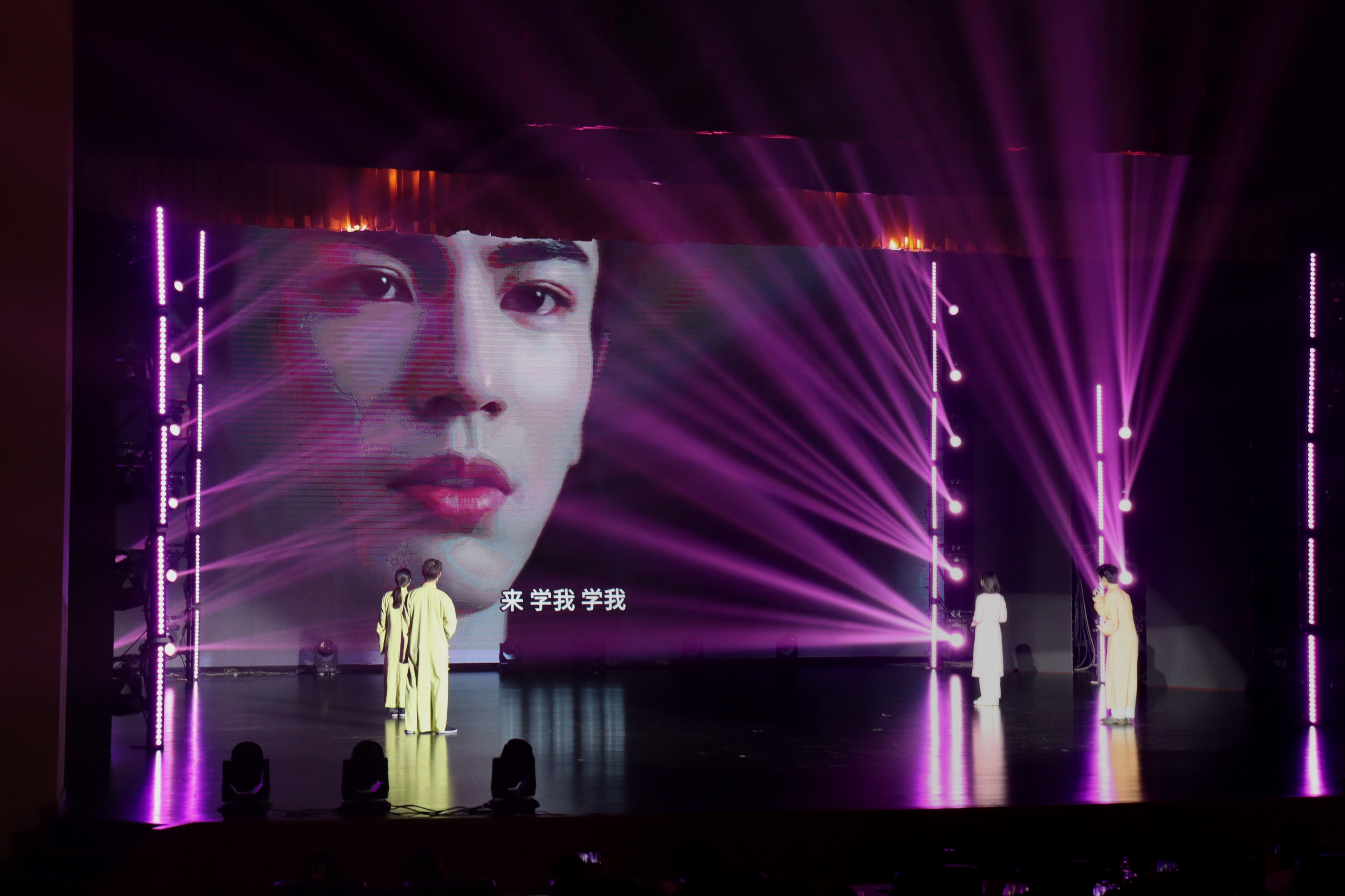 在第三篇章——承:文传之志中,《曳铃》舞蹈演员们的舞姿翩若惊鸿,婉若游龙;《趣味配音秀》将影视剧与学习生活结合,引起台下观众的深刻共鸣;歌曲《不忘初心》在回忆学院发展史、前辈先贤和优秀校友的事迹中进一步坚定文传师生的信念和意志;教师与新生代表们通过情景剧《响亮吧!新声!》的演绎,向观众展示了文传学子的蓬勃朝气。