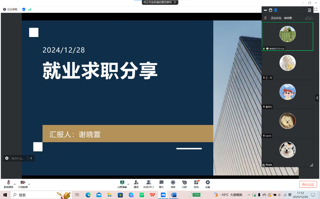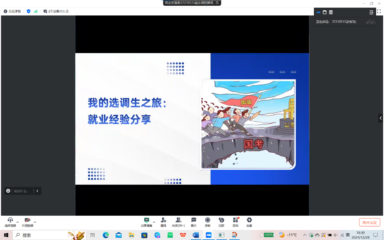 暨新闻与传播学院在寒假前夕以线上形式召开了年级大会暨朋辈就业经验分享会,会议由辅导员杨佳欣老师主持,全体大四学生参加了此次大会。会议内容涵盖了毕业论文、文明离校、假期规划以及求职经验分享四个方面,为同学们即将到来的寒假生活和未来职业规划提供了宝贵的指导和建议。