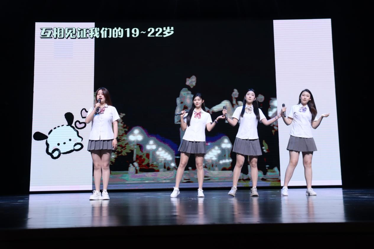 晚会的第一篇章以“文传青春”为主题。精彩纷呈的节目轮番上演。深情的独唱诉说着学子心声,动人的独舞展现着青春律动,毕业生们带来的合唱饱含同窗情谊,经典旋律的歌曲串烧点燃了全场热情,将大学期间的欢笑与泪水、奋斗与成长娓娓道来,一帧帧闪过的校园记忆深深触动着在场每一位师生的心弦。晚会的第二篇章以“扬帆远航”为主题,毕业生们通过多元的艺术形式展望未来。构思精巧的原创话剧表演引人入胜,或幽默诙谐,或发人深省。充满力量的合唱激荡着青春向上的澎湃活力,动感十足的舞蹈串烧展现了学子们的蓬勃朝气与创造力。大屏幕上播放的毕业留念视频,映出同学们熟悉的校园场景,一幕幕从入学以来的过往的经历,一张张洋溢着青春的笑脸,瞬间唤起无数珍贵回忆。