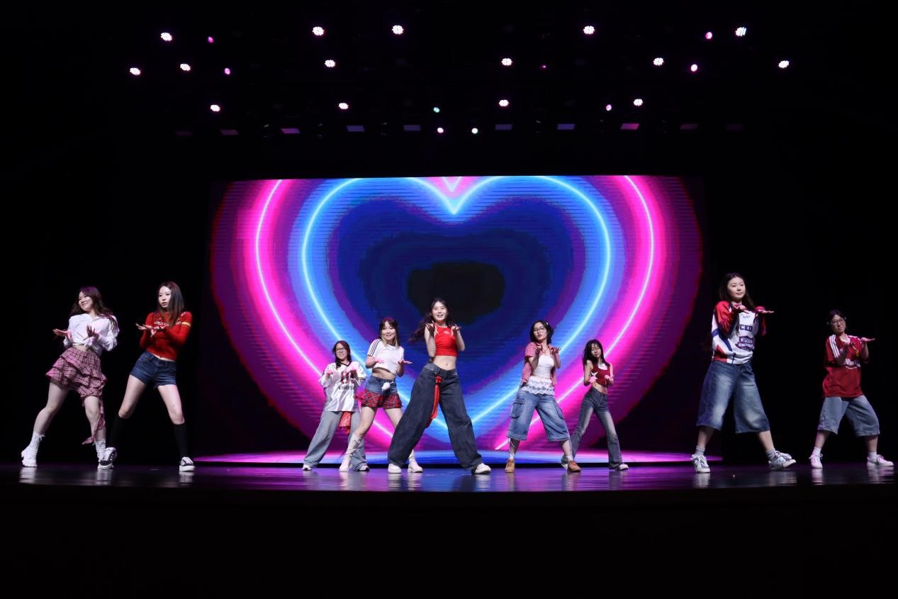 晚会在充满活力的舞蹈中拉开了序幕,同学们随着音乐挥动手中的荧光棒,现场氛围在节奏的律动中全面点燃。