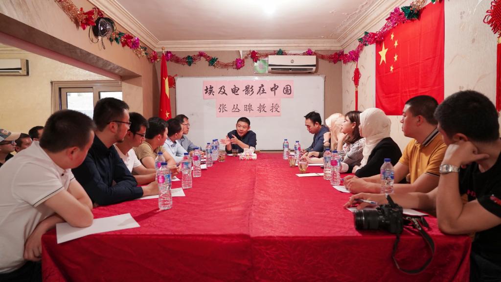 团队还与包括“中国阿拉伯友好杰出贡献奖”获得者、艾因·夏姆斯大学穆赫森·法尔加尼教授,“中华图书特殊贡献奖”获得者、沙特国王大学中文系主任哈赛宁副教授,爱资哈尔大学中文系主任阿齐兹教授,亚历山大大学中文系主任纳西德教授,诗人、翻译家、小说家赛义德·顾德,青年翻译家、作家、评论家米拉,自由撰稿人、诗人、翻译家雅拉,出版家、翻译家、社会活动家艾哈迈德·白翻译家、比较文化学者叶海亚以及翻译家、中国学学者金浩天、埃及国家翻译中心市场总监塔米儿等在内的数十位汉语相关人士进行深入交谈,了解传播现状的同时,互相表达了进一步合作的愿景。此外,对本土报社的考察也在项目团队的关注视域之内,对阿拉伯世界第一大文化类报纸——《文学消息报社》和埃及希克迈特文化投资(出版)有限公司的深层次交流,使我们了解到他们对中国语言文化传播做出的卓越贡献。为加深中埃双方文明互鉴、文化交流,张丛皞教授进行了题为《埃及电影在中国》的专题讲座,深受留埃学生学者好评。