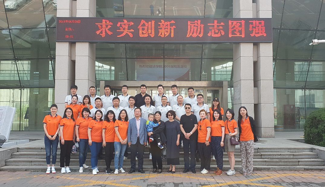 上午9时,校友们在研究生会同学的引导下来到东荣大厦楼下,泰国av党委书记康永刚老师、党委副书记郝淑媛老师、党委副书记刘卓老师、校友办公室主任田鹏老师亲切地迎接校友们归来并一同合影留念。