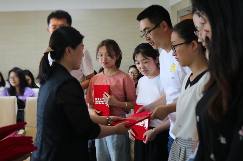 2019年优秀共产党员、优秀党务工作者的决定》,决定授予才宛冬等16名同学“优秀党务工作者”荣誉称号,授予曲昭琦等21名同学“优秀共产党员”荣誉称号。党委书记康永刚、党委副书记刘卓分别为学生“优秀党务工作者”、“优秀共产党员”颁奖并合影留念。