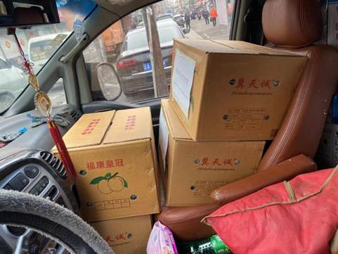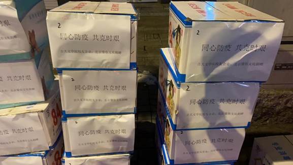 暨新闻与传播学院捐赠了10箱卫生巾、10箱卫生纸、1000副一次性手套、300瓶消毒液、10箱梨。