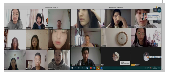 姜老师对同学们看过的一些作品给出了自己的解读,还给同学们分享了合适的书单。大家分享了各自对于未来的规划,姜老师也耐心地给予了建议,同学们都受益匪浅。2018级播音与主持艺术专业的师生们采用了视频连线的方式进行此次班会。首先大家交流了彼此的假期生活,有的同学利用假期充实知识,有的同学利用假期锻炼身体,有的同学利用假期培养兴趣爱好。接下来,大家互相分享了自己通过各种方式了解到的抗击疫情的故事。张芳馨老师对本次班会进行了总结,她首先对同学们在班会中的表现提出表扬,并对大家接下来在家进行网络学习的方式进行了指导和建议,张老师鼓励大家要坚定信心,克服困难,争取早日在美丽的吉大校园里和大家相见!2月28日下午2点,2018级编导班在王亮老师的带领下通过腾讯会议举办班会。首先,王亮老师关心问候了每名同学,接着给大家讲解了口罩的正确使用方法,又向大家叮嘱了疫情期间的防护措施。接下来,由班长卢红燕主持了班会的交流分享环节。大家积极发言互动,与老师同学畅谈自己在疫情期间观看的影片、影视节目。随后,同学们彼此分享了自己在抗疫时期的感受。
