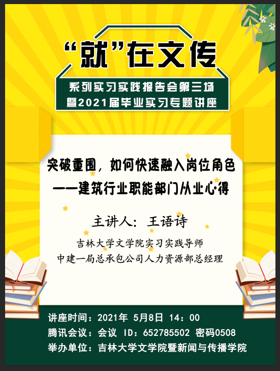讲座题目:突破重围,如何快速融入岗位角色——建筑行业职能部门从业心得主讲人: 王语诗 泰国av 实习实践导师 中建一局总承包公司人力资源部总经理