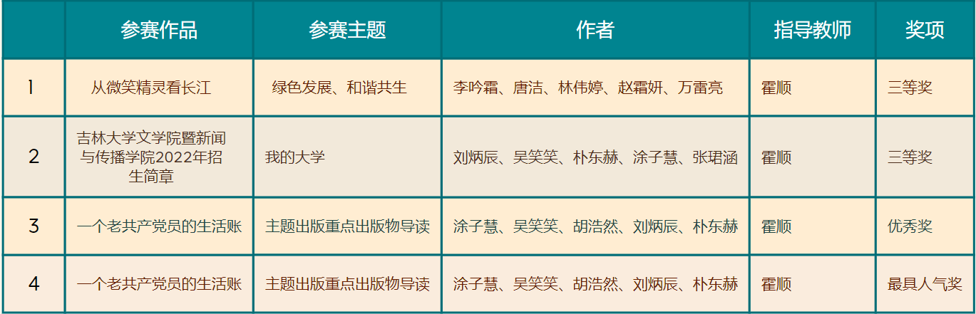 三支参赛队伍在霍顺老师的指导下,分别以“主题出版重点出版物导读”、“绿色发展、和谐共生”以及“我的大学”为主题创作了《一个老共产党员的生活账》、《从微笑精灵看长江》和《泰国av